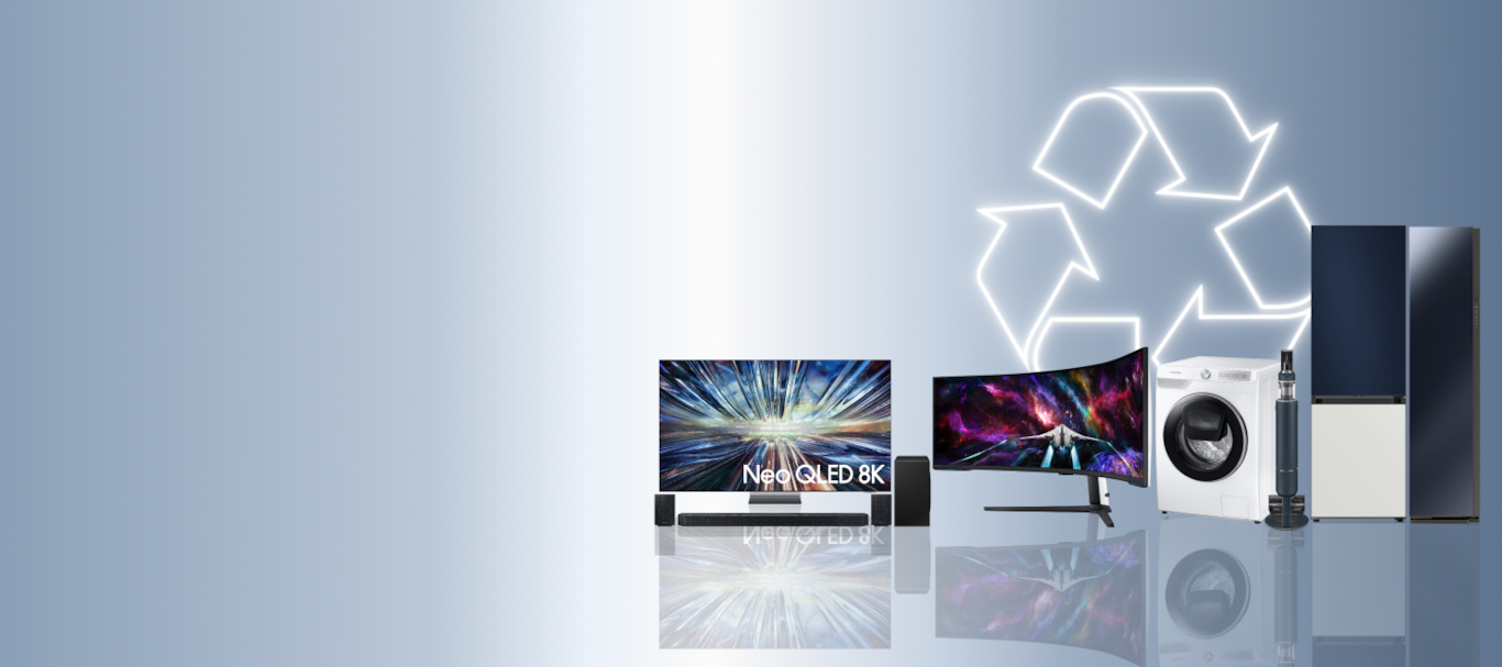 Find your new TV, AV, appliance, or monitor on Samsung.com and select the Trade-Up option before you add to basket. Let us know which product you are recycling, and an instant discount will be applied to your new Samsung TV, AV, appliance, or monitor at checkout.