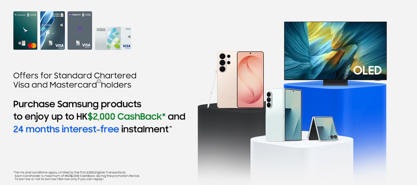 ^ Interest-free instalment offer must be applied at the time of purchase via Samsung. Application for the offer via Standard Chartered after the purchase will not be accepted.