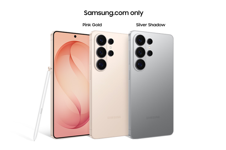 A. Galaxy S26 Ultra comes with four standard color options of Cobalt Violet, Sky Blue, Black and White and two exclusive color options of Silver Shadow and Pink Gold that are available only on Samsung.com in certain regions.<br> • Cobalt Violet, Sky Blue, Black and White are the four standard color options for Galaxy S26 Ultra that are available for purchase.<br> • Silver Shadow and Pink Gold are the exclusive color options for Galaxy S26 Ultra that are available for purchase only on the official Samsung.com website in certain regions.<br> <br> * Color availability may vary depending on country or carrier.