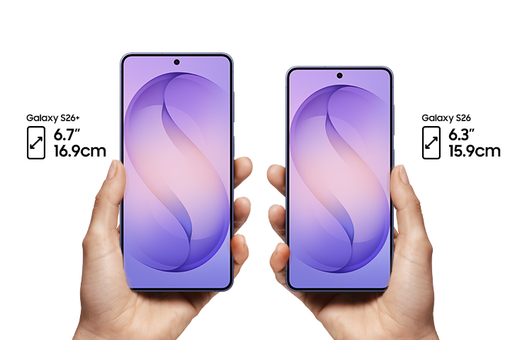A. Galaxy S26 and S26+ are similar models in features, design and performance, with the difference being that Galaxy S26+ has a bigger display and a larger battery capacity than Galaxy S26.<br> • Galaxy S26+ has a 6.7-inch display and a typical battery capacity of 4900 mAh.<br> • Galaxy S26 has a 6.3-inch display and a typical battery capacity of 4300 mAh.<br> <br> *Measured diagonally, Galaxy S26's screen size is 6.3” in the full rectangle and 6.1” accounting for the rounded corners, and Galaxy S26+'s screen size is 6.7” in the full rectangle and 6.5” accounting for the rounded corners; actual viewable area is less due to the rounded corners and camera hole.<br> *Typical value tested under third-party laboratory condition. Typical value is the estimated average value considering the deviation in battery capacity among the battery samples tested under IEC 61960 standard. Rated capacity is 4175 mAh for Galaxy S26 and 4755 mAh for Galaxy S26+.