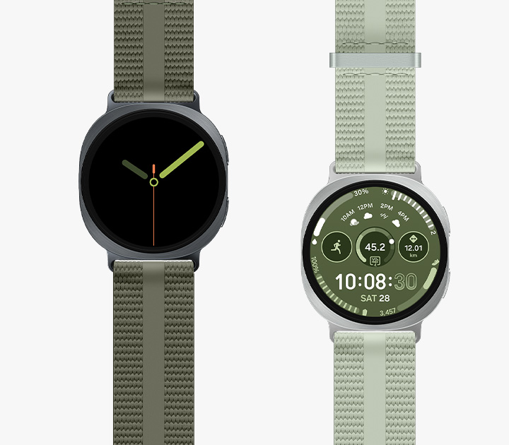 Change your band in a snap, and get ready for whatever's next. Go for the Sport Band when you're breaking a sweat, or settle for the soft Fabric Band for undisturbed comfort throughout the night. Plus, customize your watch face in the Galaxy Wearable app with options that range from colors to components. 43,44