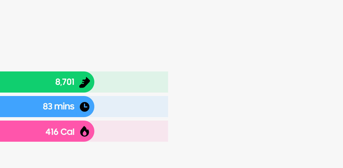 New Watch, new One UI. Catch your must-knows with the multi-info tile, bringing key info from the apps of your choice. Stay updated at a glance with streamlined notifications, and easily access your go-to apps from the top of the app list. View real-time info, from calls to running time and timers, all in one place with the Now bar. 42