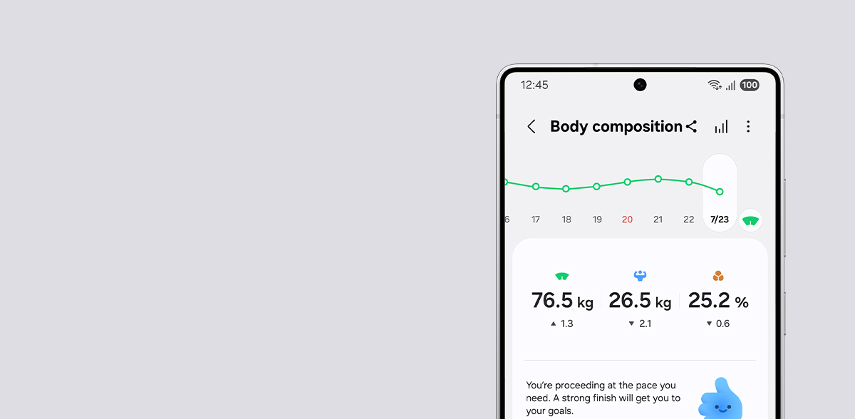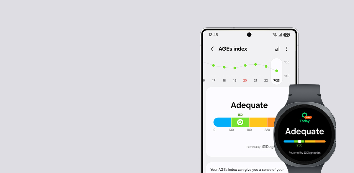 Find out if you're on the right track to aging well with Galaxy Watch8, the world's first smartwatch that measures your antioxidant level. Place your thumb on the sensor to measure the carotenoid levels in your skin and see how healthy your current diet and lifestyle are. Check your antioxidant index to improve your well-being and lower the risk of diseases. 2,28,29,30,31