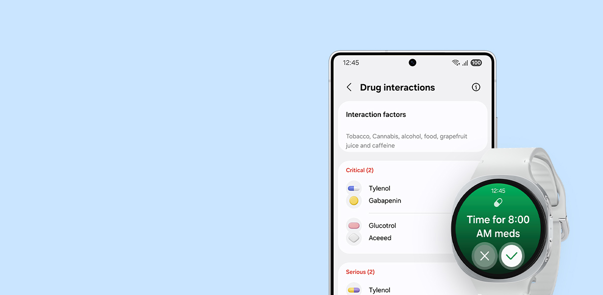 - Galaxy Watch8 must be paired with a smartphone with Android 12.0 or above and minimum 1.5 GB Memory.