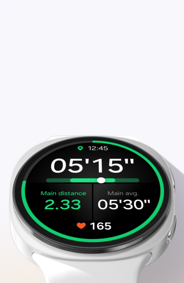 Once you've fully recovered with a good night's sleep, it's time to move running smartwatch on wrist. Start with a test to identify your running level from 1 to 10. Set your goals and work your way to break them by training at your own pace. Whether you're taking your first stride as a beginner or training for a full marathon, a 3-5 week running coach program tailored to your running capacity will guide and motivate you through every milestone, helping you break barriers. 2,15