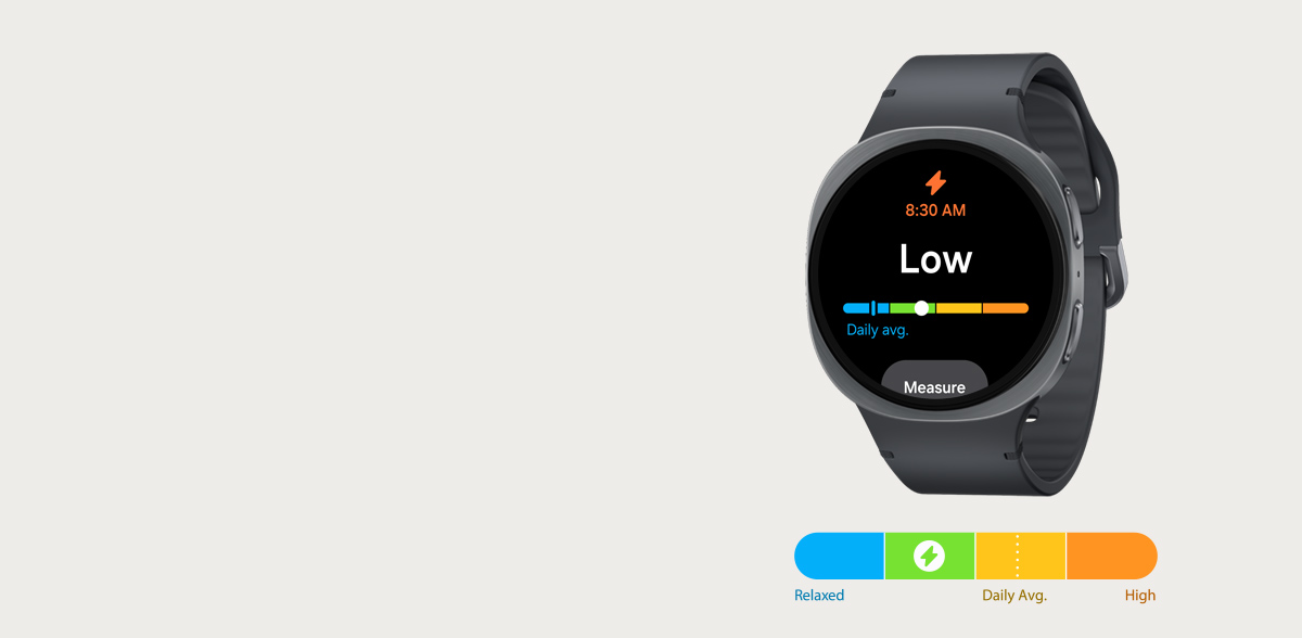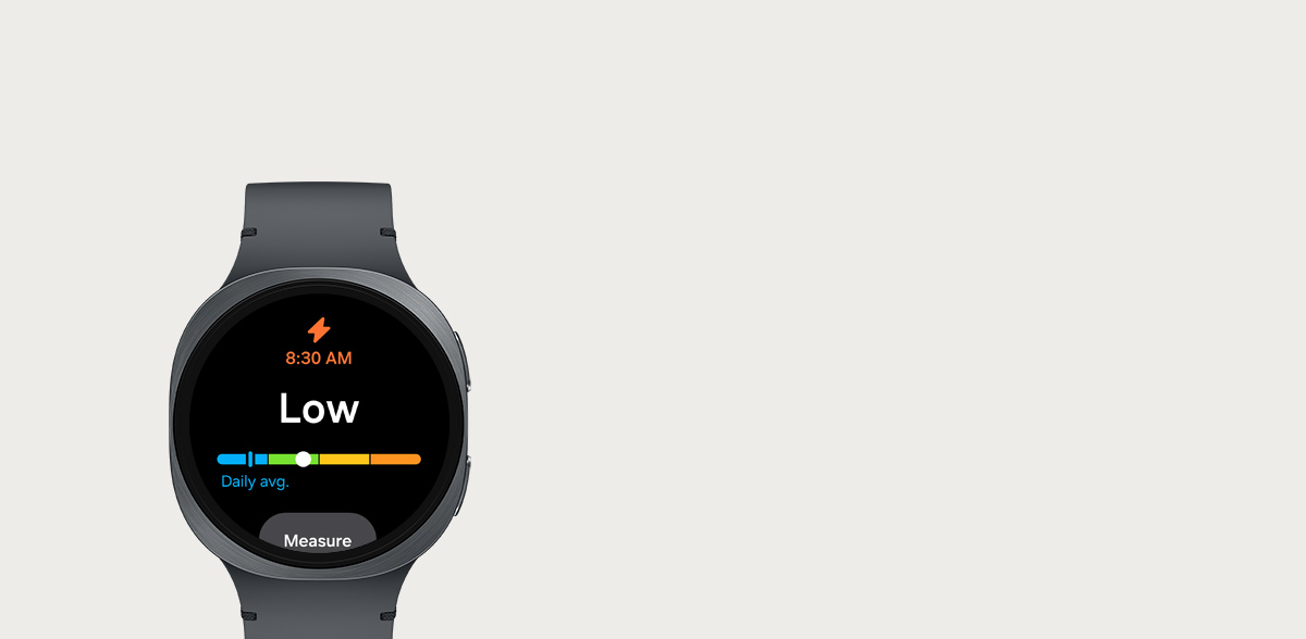 Understand your body and start your day smarter. Galaxy Watch8 tracks and analyzes your workouts, sleep patterns and nighttime heart signals to deliver a daily forecast — your Energy Score. Check insight messages brought to you by Galaxy AI, and review each index in detail. Plan your day accordingly to make the most of each moment. 2,6